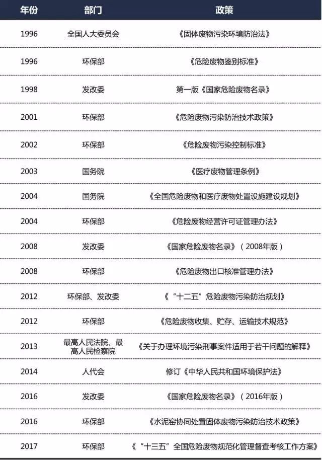 近年來(lái)危廢相關(guān)法規(guī)政策