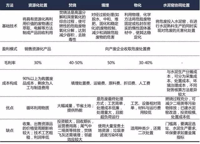 危廢處理方法主要有資源化、無(wú)害化兩類