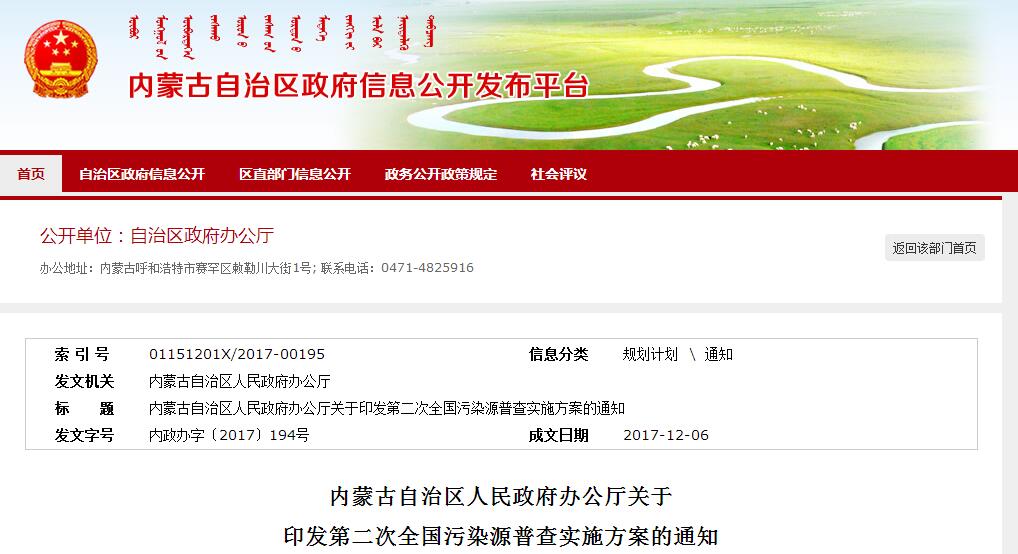 內蒙古自治區(qū)第二次全國污染源普查實施方案