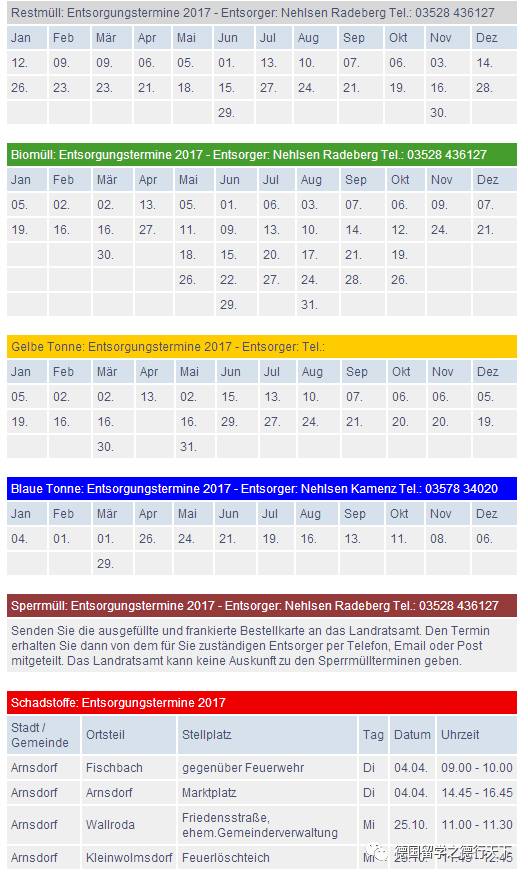 2017年垃圾清理日程表