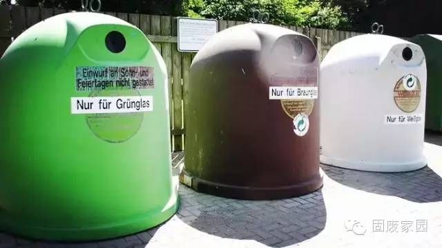 在一般各居民住戶家中,都設(shè)有機垃圾收集桶和剩余垃圾收集桶,每桶剩余垃圾的收集價格要高于有機垃圾的價格;各戶居民可根據(jù)自己產(chǎn)生的垃圾量,確定所需垃圾桶的大小,桶大小不同交費價錢也不同,城市環(huán)衛(wèi)局會定期上門收取和清空垃圾桶。在各居民小區(qū)設(shè)有紙、玻璃(棕色、綠色、白色)和塑料等廢舊包裝材料(標(biāo)有綠點標(biāo)志)的收集桶,各住戶可以把廢舊紙、玻璃瓶等送至小區(qū)的該類垃圾收集桶中。