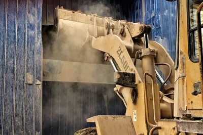 環(huán)衛(wèi)作業(yè)車輛直接把垃圾卸到分揀平臺,專用爪機把床墊、沙發(fā)等大件垃圾分離,挖機喂料。