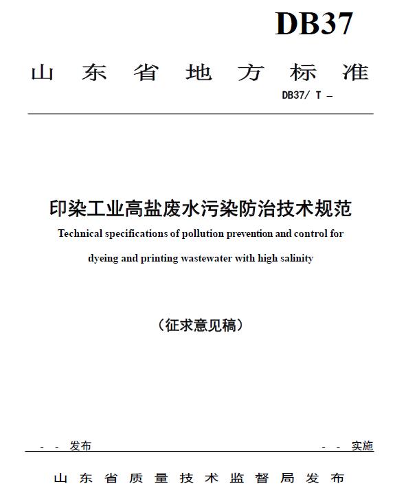 日前,山東環(huán)保廳印發(fā)《印染工業(yè)高鹽廢水污染防治技術(shù)規(guī)范(征求意見稿)》。本標(biāo)準(zhǔn)規(guī)定了印染行業(yè)高鹽廢水治理工程設(shè)計(jì)、施工、驗(yàn)收、運(yùn)行與維護(hù)等的技術(shù)要求。全文如下: