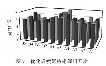 調前、調后噴氨格柵閥門開度分別見圖6、圖7。