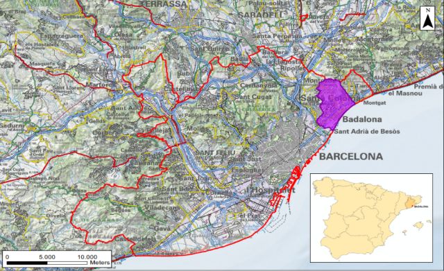 巴達洛納位于西班牙東北部,巴索斯(Besò)河口,臨地中海,是全國最大工業(yè)中心巴塞羅那的東北部衛(wèi)星城市 (圖8),擁有21.2平方公里土地和約22萬人口。