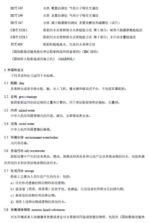 船舶水污染物排放控制標準(GB3552-2018代替GB3552-83)