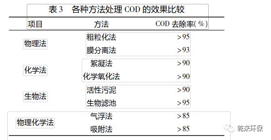 ( 2) 油田含油污水中 COD 去除率物理化學(xué)法相 對低,可達 80% ; 生物法相對高,可達 95% 。