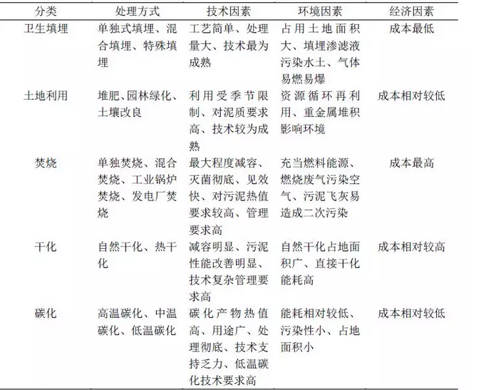 表4 常見污泥處置方式比較