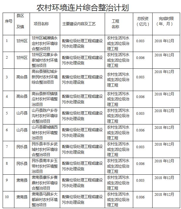 張掖市2018年度水污染防治工作實施方案