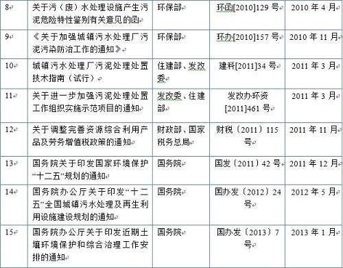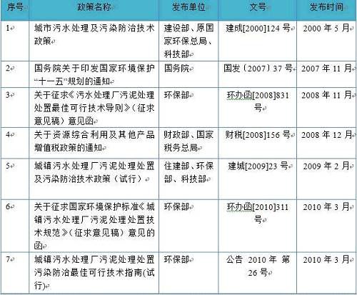 污泥處理處置相關(guān)政策出臺(tái)情況