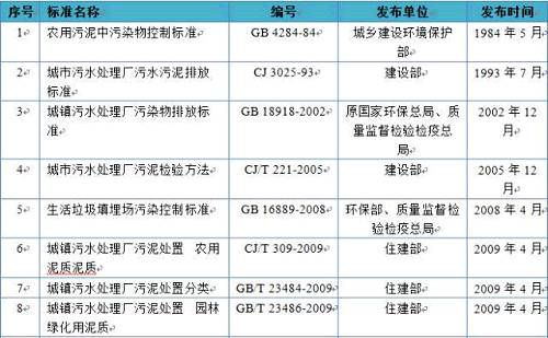 從國家層面的標(biāo)準(zhǔn)來看,現(xiàn)共發(fā)布過污泥相關(guān)標(biāo)準(zhǔn)16項(xiàng),其中包括污泥泥質(zhì)相關(guān)標(biāo)準(zhǔn)有8項(xiàng),排放標(biāo)準(zhǔn)4項(xiàng),分類標(biāo)準(zhǔn)1項(xiàng),檢驗(yàn)方法1項(xiàng),技術(shù)規(guī)程1項(xiàng),還有1項(xiàng)設(shè)計(jì)規(guī)范。整體來看,大部分污泥相關(guān)標(biāo)準(zhǔn)均為推薦性標(biāo)準(zhǔn)和行業(yè)標(biāo)準(zhǔn),國家強(qiáng)制標(biāo)準(zhǔn)有5項(xiàng),其中《農(nóng)用污泥中污染物控制標(biāo)準(zhǔn)》(GB4284-84)和《城鎮(zhèn)污水處理廠污染物排放標(biāo)準(zhǔn)》(GB 18918-2002)發(fā)布時(shí)間要追溯到1984年和2002年,在《生活垃圾填埋場(chǎng)污染控制標(biāo)準(zhǔn)》(GB16889-2008)中關(guān)于污泥的規(guī)定只有一條,而水泥窯協(xié)同處置污泥的設(shè)計(jì)標(biāo)準(zhǔn),對(duì)整個(gè)行業(yè)參考性較小。目前最新執(zhí)行的強(qiáng)制性標(biāo)準(zhǔn)為《城鎮(zhèn)污水處理廠污泥泥質(zhì)》(GB24188-2009),標(biāo)準(zhǔn)內(nèi)容也僅僅只有對(duì)4.2.1條款的城鎮(zhèn)污水處理廠污泥泥質(zhì)基本控制指標(biāo)及限值作出強(qiáng)制性要求,其他條款如監(jiān)測(cè)分析方法等均為推薦性。