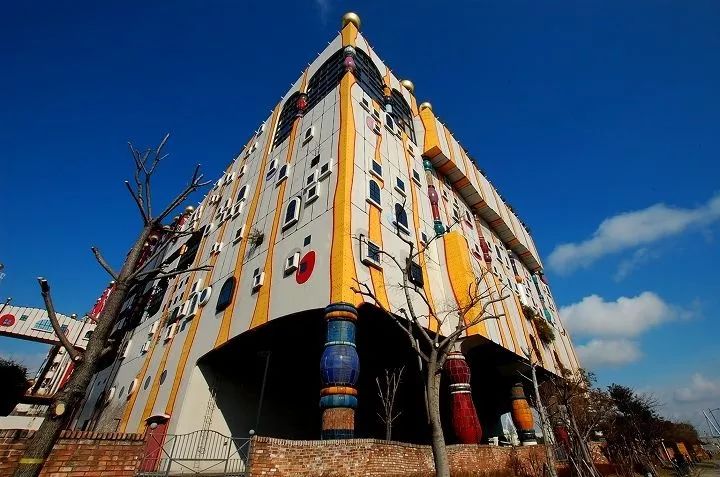 “舞洲工場”的外觀設計出自奧地利著名生態(tài)建筑設計師Friedensreich Hundertwasse。鮮艷的色塊使得這座垃圾廠色彩斑斕,不再給人以冷冰冰的感覺,建筑物外表面紅色與黃色的條紋象征著處理廠的火焰。工廠有著五百多個形狀各異的窗戶,其中八成是用作裝飾。整個建筑被綠植包圍,曲線的建筑設計與植被相映成趣,體現了舞洲垃圾處理廠“融技術、生態(tài)、藝術為一體”的口號。