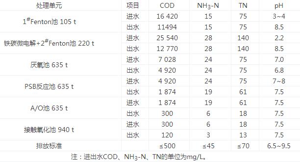 表2各單元處理效果及排放標準
