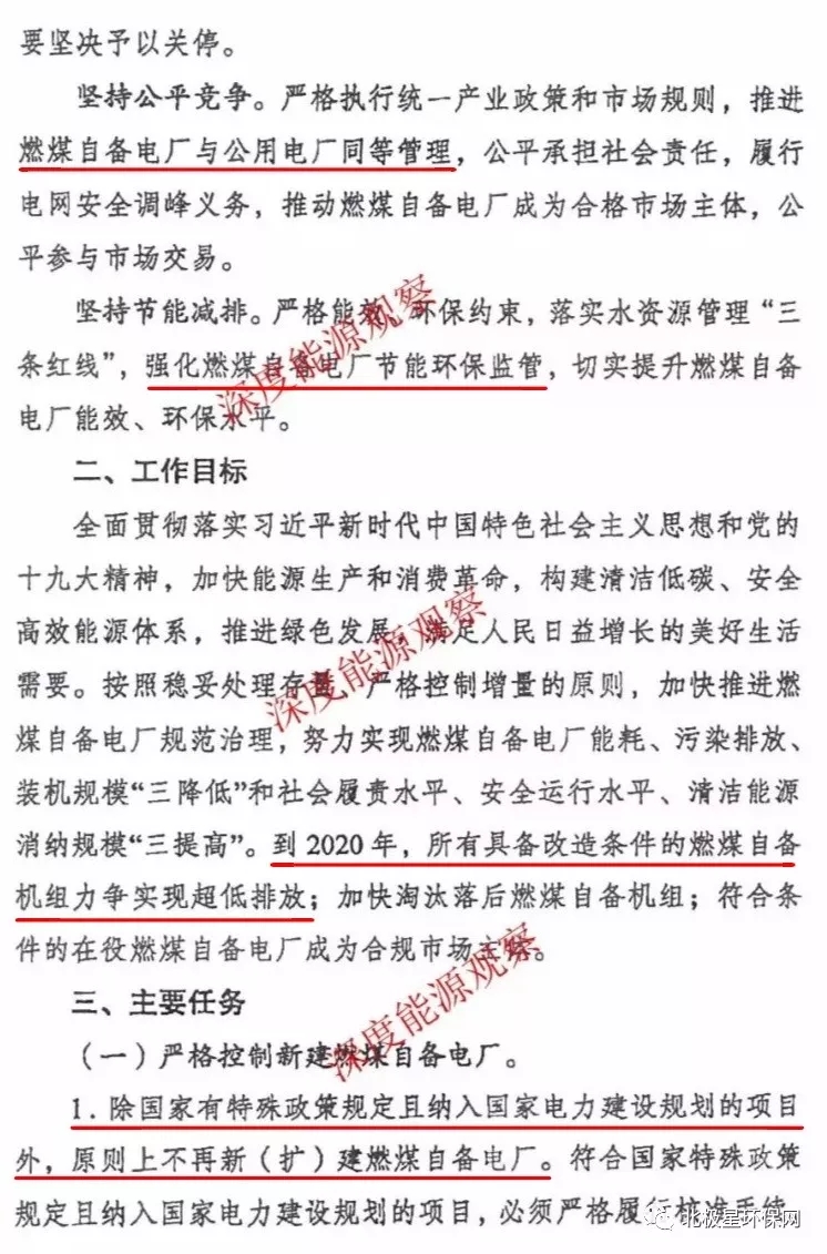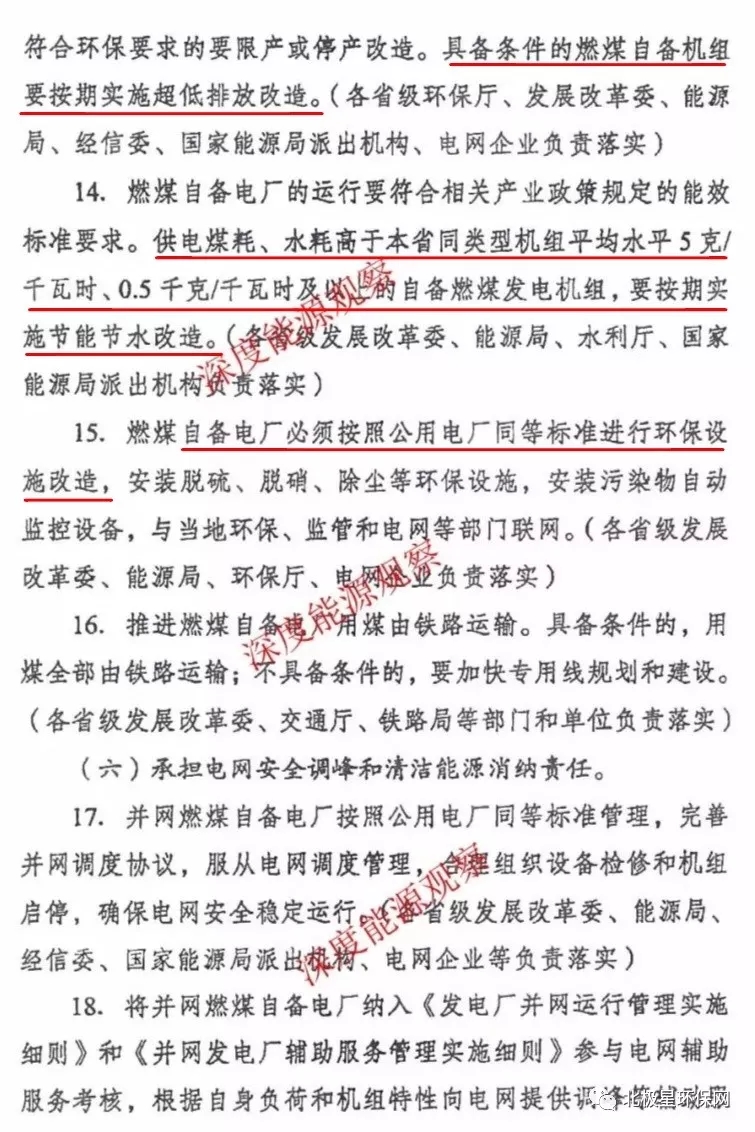 燃煤自備電廠執(zhí)行國家、地方對公用燃煤電廠的最新標準,按期實施超低排放改造。供電煤耗、水耗高于本省同類機組平均水平5克/千瓦時、0.5千克/千瓦時及以上的自備燃煤發(fā)電機組,按期實施節(jié)能節(jié)水改造。