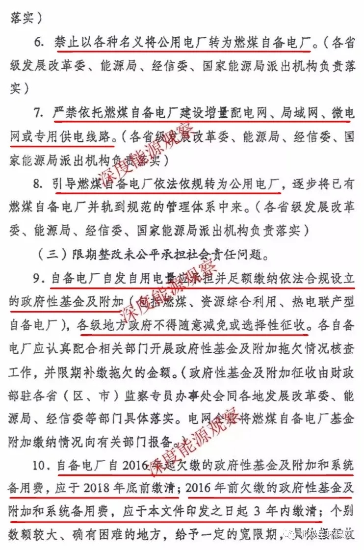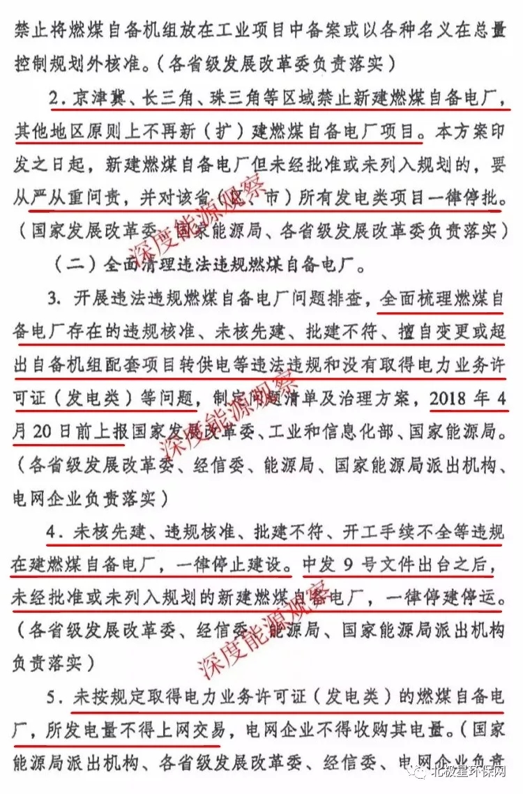 全面梳理燃煤自備電廠的違規(guī)準備、批建不符等各類問題,4月20號前上報發(fā)改委、工信部、能源局。對于違規(guī)在建的燃煤燃煤自備電廠,一律停建!中發(fā)9號文之后,未經(jīng)批準或未未列入規(guī)劃的新建燃煤自備電廠,一律停建、停運!