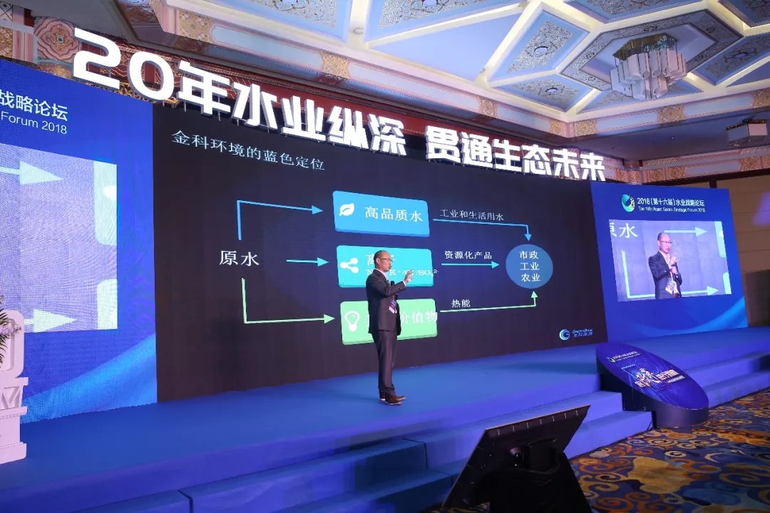 本次論壇以“將改革進(jìn)行到底——二十年水業(yè)縱深貫通生態(tài)未來(lái)”為主題,回顧水業(yè)改革歷程,講述變革中企業(yè)戰(zhàn)略轉(zhuǎn)型背后的故事,立足民生預(yù)判水業(yè)變革方向。張慧春董事長(zhǎng)從公司的本質(zhì)——?jiǎng)?chuàng)造價(jià)值出發(fā),提出從“環(huán)境治理”向“價(jià)值物回收和資源化”,即“綠色經(jīng)濟(jì)”向“藍(lán)色經(jīng)濟(jì)”的戰(zhàn)略轉(zhuǎn)變思路,介紹了金科環(huán)境“通過(guò)水中價(jià)值物回收和資源化解決水污染和水短缺問(wèn)題”的戰(zhàn)略定位。瞄準(zhǔn)這一定位,金科環(huán)境聚焦原水中包括高品質(zhì)水、離子和其他價(jià)值物在內(nèi)的一切資源,通過(guò)其原創(chuàng)的藍(lán)色生態(tài)商業(yè)模式,為客戶提供工程建設(shè)技術(shù)、數(shù)字雙胞胎及運(yùn)營(yíng)服務(wù)和各類資源化產(chǎn)品。