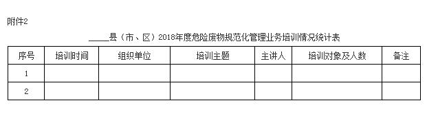 4月30日前,各縣、市、區(qū)環(huán)保局要對轄區(qū)內(nèi)危險(xiǎn)廢物產(chǎn)生和經(jīng)營單位開展危險(xiǎn)廢物相關(guān)知識培訓(xùn),認(rèn)真學(xué)習(xí)相關(guān)法律法規(guī),新修訂的危險(xiǎn)廢物規(guī)范化管理指標(biāo)體系、危險(xiǎn)廢物產(chǎn)生單位管理計(jì)劃制定指南、新版危險(xiǎn)廢物名錄、固體廢物管理信息系統(tǒng)等,做好培訓(xùn)記錄,培訓(xùn)情況(附件2)于5月底前報(bào)市局。