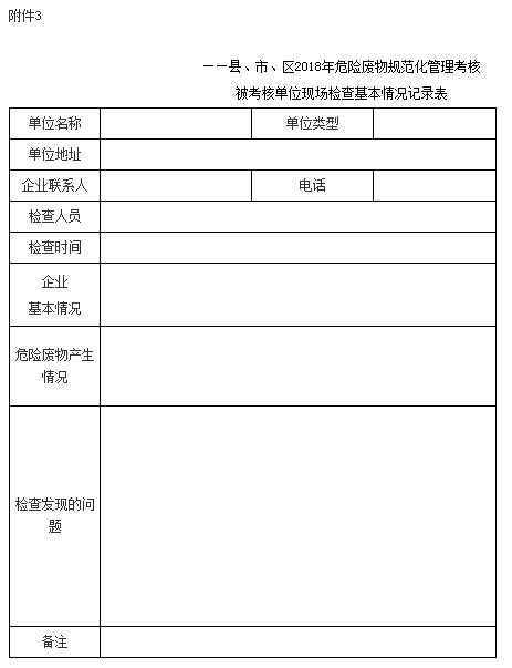 對各縣、市、區(qū)環(huán)保局危險(xiǎn)廢物規(guī)范化管理抽查考核工作,按照《危險(xiǎn)廢物規(guī)范化管理檢查考核工作評級指標(biāo)》(見附件5)執(zhí)行,考核比例不低于30%。