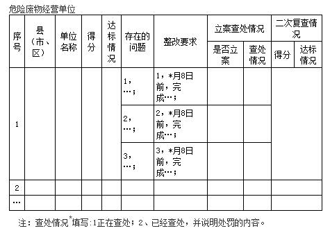 (三)省廳督查考核。省廳將在3月至12月隨時(shí)、不定期組織對各市的危險(xiǎn)廢物規(guī)范化管理工作進(jìn)行督查考核評級,并將督查結(jié)果報(bào)送環(huán)保部,同時(shí)進(jìn)行全省排名、網(wǎng)上公示。