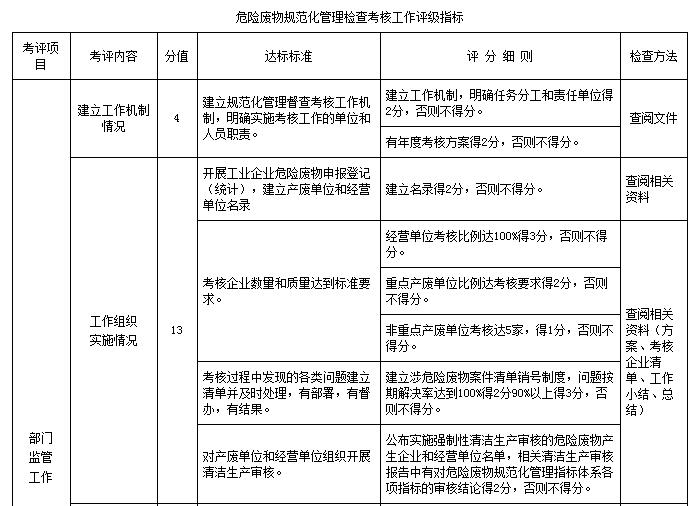 5.危險(xiǎn)廢物規(guī)范化管理檢查考核工作評級指標(biāo)