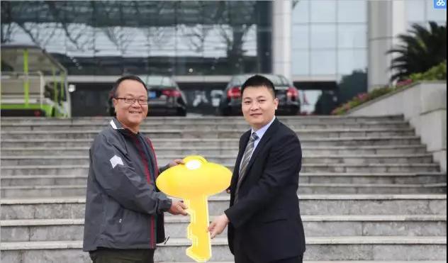 ▲中聯(lián)環(huán)境人力資源總監(jiān)虞小躍致辭,并將金鑰匙交付給客戶