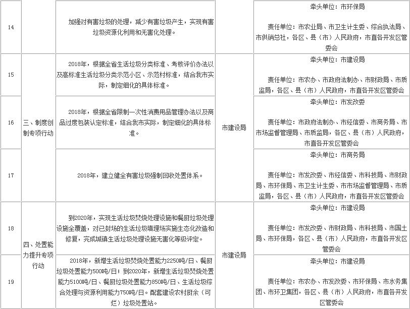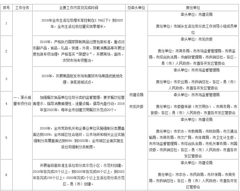 紹興市生活垃圾分類五大專項行動責(zé)任分解表