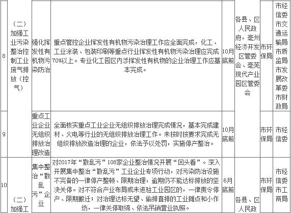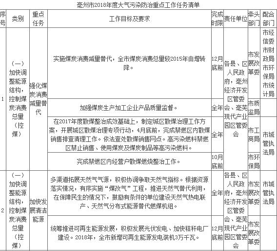 附件:亳州市2018年大氣污染防治重點(diǎn)工作任務(wù)清單