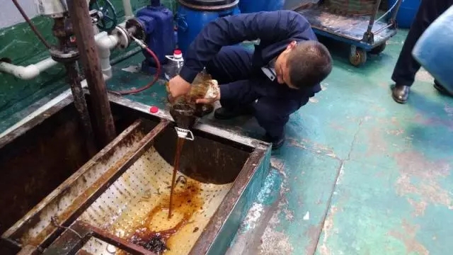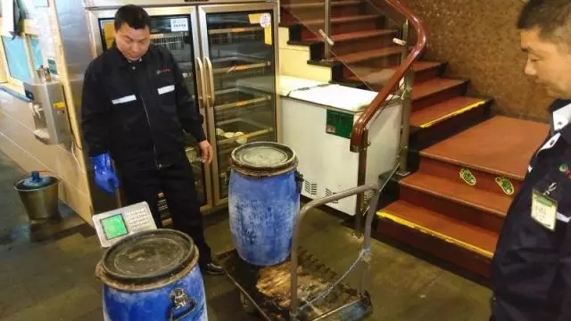 ② 盛滿“地溝油”的桶在現(xiàn)場過秤,足足有112斤!如果油水分離不徹底、含水量高,那么就會影響收運效率,也會增加下游處置的成本。