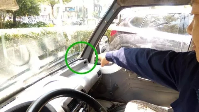 ⑤ 收運車駕駛室內(nèi),司機將GPS裝置指給記者看,每天“地溝油”的物流都在監(jiān)控下運行。