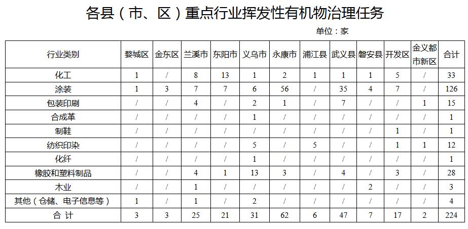 重點(diǎn)推進(jìn)化工、工業(yè)涂裝、包裝印刷、橡膠和塑料制品、化纖、紡織印染、合成革、制鞋等行業(yè)VOCs污染防治。永康、東陽、義烏、武義等4個(gè)省、市重點(diǎn)地區(qū)要編制地區(qū)VOCs深化治理方案。重點(diǎn)企業(yè)要建立完善“一廠一策一檔”制度。