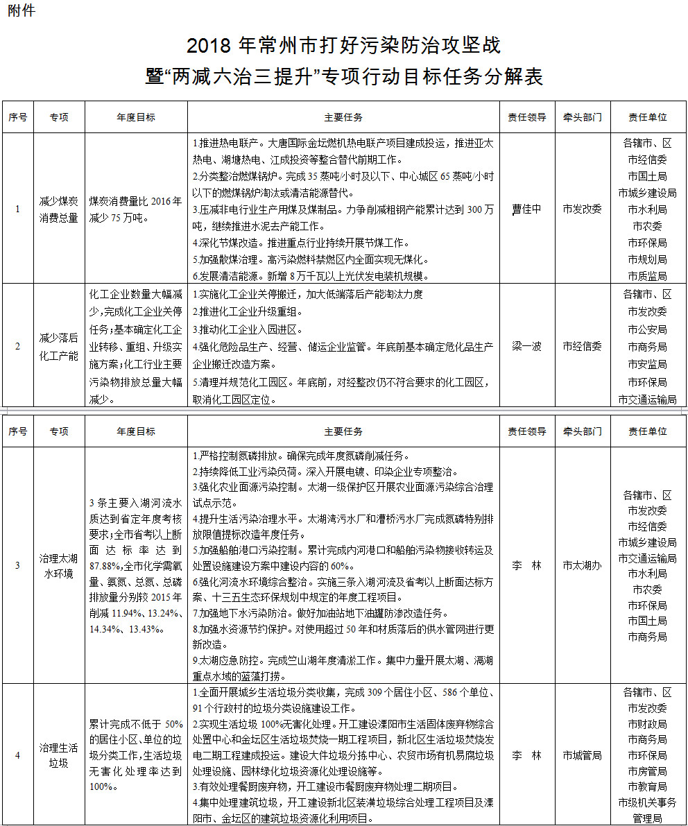 市政府關(guān)于印發(fā)《2018年常州市打好污染防治攻堅(jiān)戰(zhàn)暨“兩減六治三提升”專項(xiàng)行動工作方案》的通知