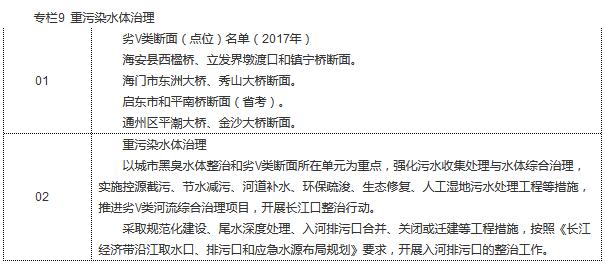 重點(diǎn)治理劣Ⅴ類水體。根據(jù)《關(guān)于印發(fā)南通市重點(diǎn)斷面水質(zhì)提升專項(xiàng)行動(dòng)方案的通知》,對(duì)重點(diǎn)斷面開展水質(zhì)提升專項(xiàng)整治行動(dòng)。同時(shí),制定劣Ⅴ類斷面(點(diǎn)位)所在控制單元水質(zhì)達(dá)標(biāo)方案,開展水環(huán)境污染綜合治理。定期向社會(huì)公布實(shí)施情況,對(duì)水質(zhì)不達(dá)標(biāo)的區(qū)域?qū)嵤炫贫睫k,必要時(shí)采取區(qū)域限批等措施。對(duì)枯水期等易發(fā)生水質(zhì)超標(biāo)的時(shí)段,實(shí)施排污大戶企業(yè)限產(chǎn)限排等措施,進(jìn)一步減少污染物排放,保障水質(zhì)穩(wěn)定達(dá)標(biāo)。加強(qiáng)入江支流、入海河流環(huán)境綜合整治,編制整治方案,加強(qiáng)斷面水質(zhì)自動(dòng)監(jiān)測(cè),消除劣Ⅴ類入江和入海河流。