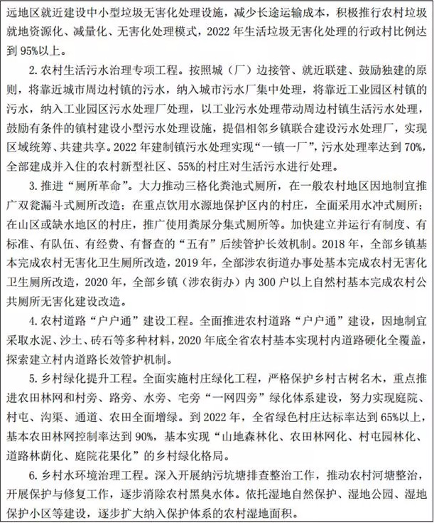 (三)農(nóng)民生產(chǎn)生活條件明顯改善。農(nóng)村基礎(chǔ)設(shè)施建設(shè)不斷加強(qiáng),農(nóng)村道路、廁所、供暖、供電、學(xué)校、住房、飲水“七改”工程全面提速,人居環(huán)境整治加快推進(jìn)。全省基本形成以縣道為骨架、鄉(xiāng)道為支線、村道為脈絡(luò)的農(nóng)村公路網(wǎng)絡(luò)體系,實(shí)現(xiàn)了與國省干線公路以及城市道路的有效對接互通,在“村村通”的基礎(chǔ)上啟動農(nóng)村道路“戶戶通”工程。農(nóng)村垃圾污水治理水平顯著提高,實(shí)現(xiàn)城鄉(xiāng)環(huán)衛(wèi)一體化所有村莊全覆蓋,形成了成熟的“戶集、村收、鎮(zhèn)運(yùn)、縣處理”垃圾處理模式,“建設(shè)運(yùn)營一體、區(qū)域連片治理”的污水治理模式初步形成。大力推進(jìn)農(nóng)村危房改造,累計改造危房近40萬戶,建檔立卡貧困戶危房改造任務(wù)基本完成。