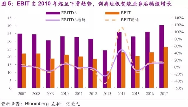 第二次剝離則發(fā)生在2014年,公司退出了對中國市場的股權投資,同時剝離了全資子Wheelabrator公司以及全部的垃圾焚燒業(yè)務。