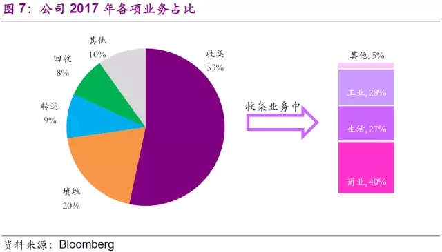 公司核心業(yè)務在美國已占據領先地位,合并后,公司先是迅速拿下了BFI(全美第二大固廢公司)的加拿大全部業(yè)務,緊接著又收購了全美第九大固廢公司Eastern Environmental Services。公司在穩(wěn)固開展自有優(yōu)勢垃圾收運業(yè)務的基礎上,先是在1999年收購公司垃圾焚燒領域支柱Wheelabrator的剩余33%股權,隨后分別在2011年、2013年收購全美最大的固廢第三方服務運營商Oakleaf Global Holding和私營回收公司Greenstar,穩(wěn)固提高公司在垃圾收運、垃圾轉運、以及垃圾回收等核心業(yè)務上的領先地位。
