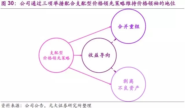 價格領袖是指經由同業(yè)的龍頭公司現(xiàn)行制定產品某一期間內的價格后,其它公司根據制定的價格,就其同質產品確定其價格。行業(yè)的競爭對手如果期望維持已有的市場份額,只能與領先公司制定的價格相匹配。WM在通過兼并收購占據統(tǒng)治性的市場份額后,利用龍頭地位果斷選擇了支配型價格領先策略,進一步通過“收益導向策略”、“合并重組”、“剝離不良資產”這三項舉措的實施維持其價格領袖的地位。