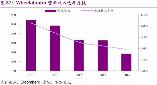 對Wheelabrator業(yè)務的剝離則屬意料之外,情理之中。Wheelabrator作為公司綠色能源業(yè)務的核心子公司,長期為公司提供穩(wěn)定的收益和現(xiàn)金流。截止2014年,Wheelabrator共有15個垃圾焚燒發(fā)電廠和4個獨立電廠,年均垃圾焚燒量達740萬噸,年均發(fā)電能力達768兆瓦,在全美垃圾發(fā)電行業(yè)處領先水平。然而隨著垃圾發(fā)電行業(yè)的增速放緩,Wheelabrator自2010年起營業(yè)收入持續(xù)走低,營業(yè)收入占比也由巔峰時的6.1%下滑至5.0%。WM為了獲得更充裕的自由現(xiàn)金流,可以對公司的核心固體廢棄物業(yè)務進行進一步的投資布局,在2014年以13億美元的交易對價將Wheelabrator進行了出售剝離。