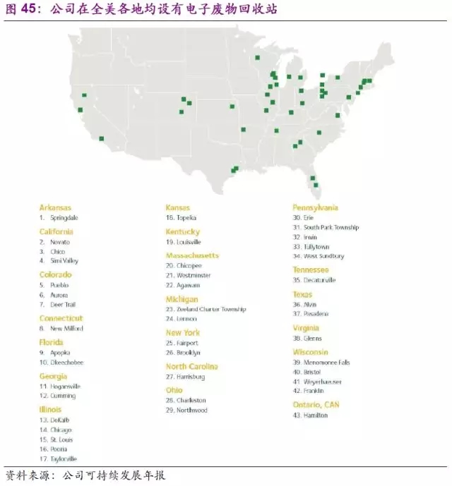 隨著固廢傳統(tǒng)市場業(yè)務趨于飽和,公司也在積極求變。一方面,公司利用自有團隊積極研發(fā)已有業(yè)務的轉型,另一方面,公司先后在2009至2016年,通過多次收購成熟的專業(yè)化新生公司,拓展了醫(yī)廢、有機垃圾、建筑垃圾、電子回收等市場,并取得了一定成績。需要注意的是,公司的以上收購雖涉及不同細分領域,但核心觀念一致,即加大資源回收再利用,這也契合美國固廢市場的轉型,進一步優(yōu)化完善固廢處理全產業(yè)鏈發(fā)展。