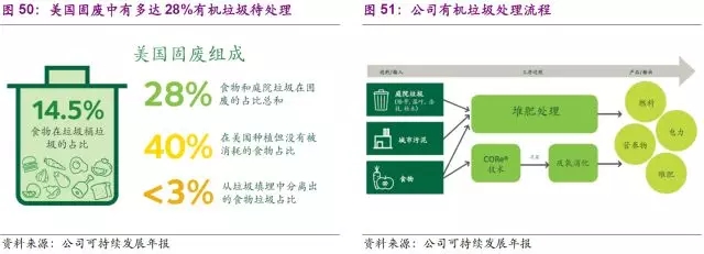 公司還在傳統(tǒng)堆肥處理有機垃圾的基礎上進行了新技術的研發(fā)。公司在2013年新研發(fā)的有機廢物集中回收系統(tǒng)(CORe®),通過對商業(yè)食物垃圾的處理,制成泥漿后送至污水處理廠的厭氧消化池,可以提升多達70%的厭氧消化的能量產生量。公司在2015年已有3家處理廠使用CORe®系統(tǒng)處理8000噸的商業(yè)食物垃圾,未來仍有擴張計劃。