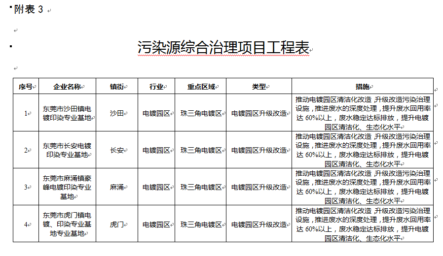4. 規(guī)劃涉重金屬行業(yè)污染源治理工程表(清潔生產(chǎn)