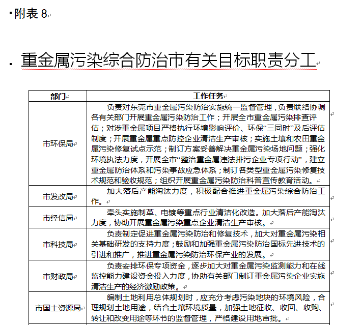 8. 重金屬污染綜合防治市有關(guān)目標職責(zé)分工