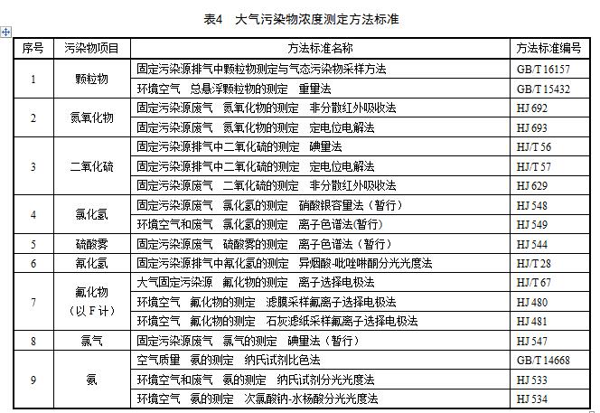 大氣污染物濃度的分析測定應按照表4規(guī)定的方法執(zhí)行。