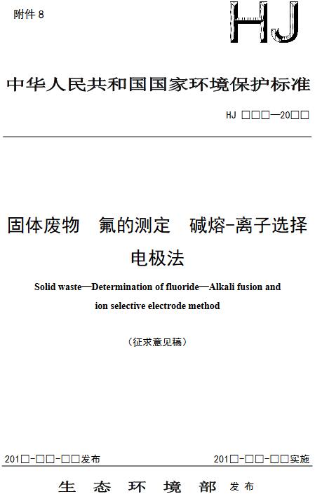 為貫徹《中華人民共和國環(huán)境保護法》和《中華人民共和國固體廢物污染環(huán)境防治法》,保護環(huán)境,保障人體健康,規(guī)范固體廢物中氟的測定方法,生態(tài)環(huán)境部印發(fā)《固體廢物 氟的測定 堿熔-離子選擇電極法(征求意見稿)》,詳情如下: