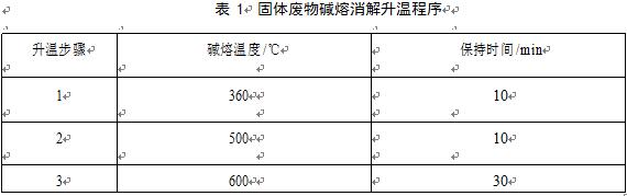 中,按照表 1 的升溫程序進行堿熔消解。待溫度降至室溫后,將鎳坩堝取出,用約 80 ml 熱