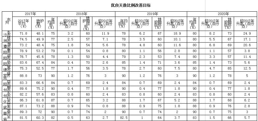 14. 推動城市環(huán)境空氣質(zhì)量達(dá)標(biāo)。突出問題導(dǎo)向和目標(biāo)導(dǎo)向,分析原因,精準(zhǔn)施策,編制城市環(huán)境空氣質(zhì)量達(dá)標(biāo)規(guī)劃并向社會公布,強(qiáng)化專項攻堅治理,推動一批城市環(huán)境空氣質(zhì)量達(dá)標(biāo)。到2020年,郴州市、張家界市、益陽市、吉首市等城市實現(xiàn)環(huán)境空氣質(zhì)量達(dá)標(biāo)。