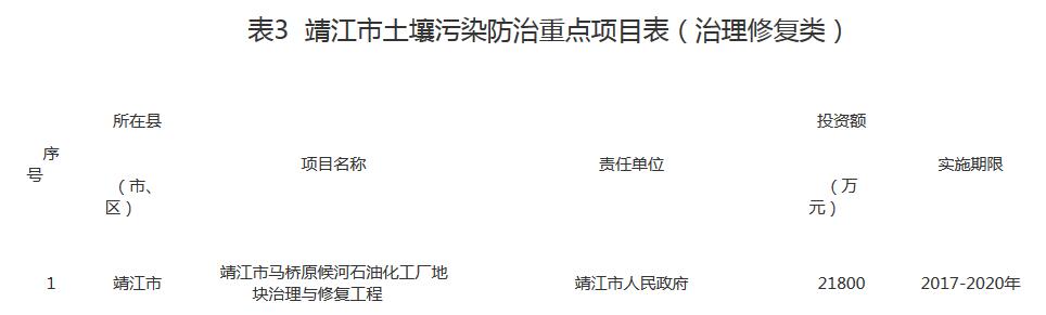 2.加快推進靖江市土壤污染綜合防治先行區(qū)建設(shè)。2018年6月底前編制完成土壤污染綜合防治先行區(qū)建設(shè)方案,報泰州市政府備案。