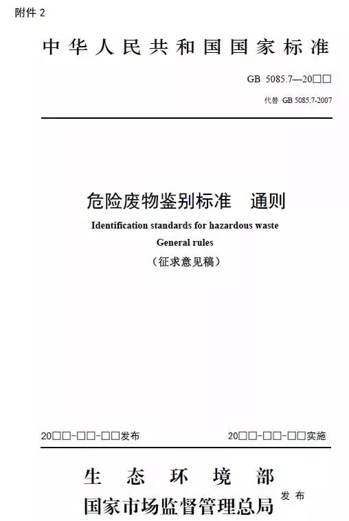 《危險廢物鑒別標準 通則》(征求意見稿)
