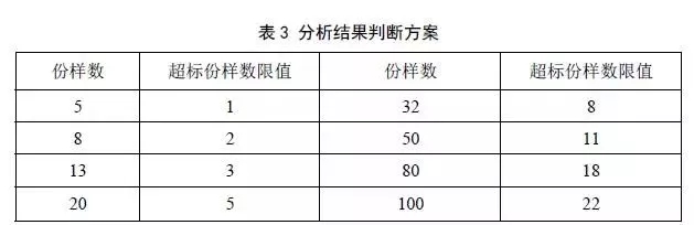 7.1在對固體廢物樣品進行檢測后,如果檢測結果超過GB5085.1、GB5085.3、GB5085.4、GB5085.5和GB5085.6中相應標準限值的份樣數(shù)大于或者等于表3中的超標份樣數(shù)限值,即可判定該固體廢物具有該種危險特性。