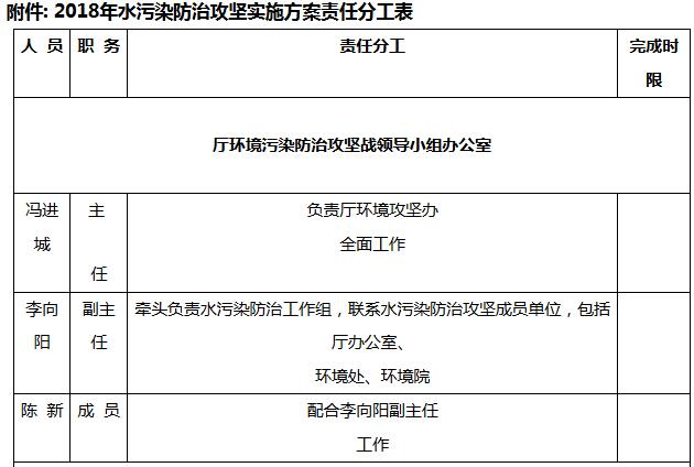 省廳成立環(huán)境污染防治攻堅(jiān)戰(zhàn)領(lǐng)導(dǎo)小組辦公室(以下簡稱廳環(huán)境攻堅(jiān)辦),馮進(jìn)城處長任辦公室主任。下設(shè)大氣、水和土壤污染防治工作組。水污染防治工作組由副主任李向陽牽頭負(fù)責(zé),省地質(zhì)環(huán)境監(jiān)測院陳新配合,聯(lián)系水污染防治攻堅(jiān)成員單位,包括廳辦公室、環(huán)境處、環(huán)境院。