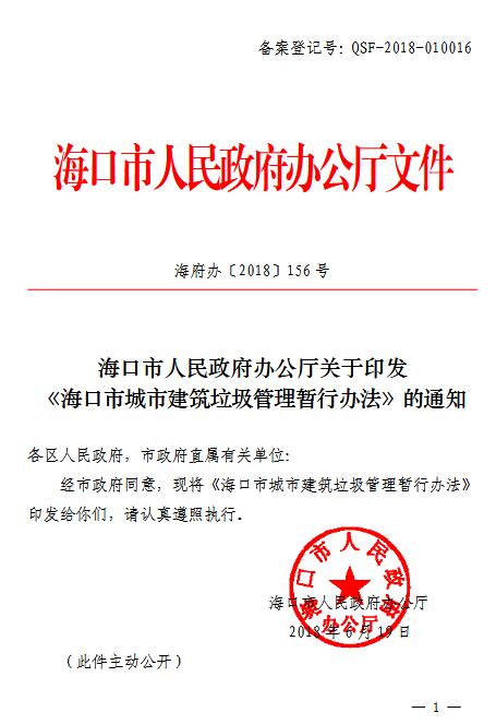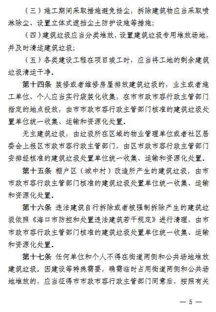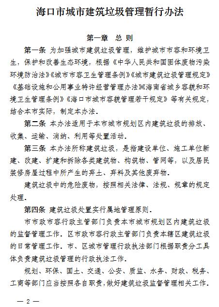 日前???/a>市人民政府辦公廳印發(fā)《海口市城市建筑垃圾管理暫行辦法》(以下簡稱《辦法》),明確要求對建筑垃圾處置實行特許經(jīng)營管理,企業(yè)或個人如果違規(guī)處置將受處罰。《辦法》從今年9月1日起施行,有效期兩年。